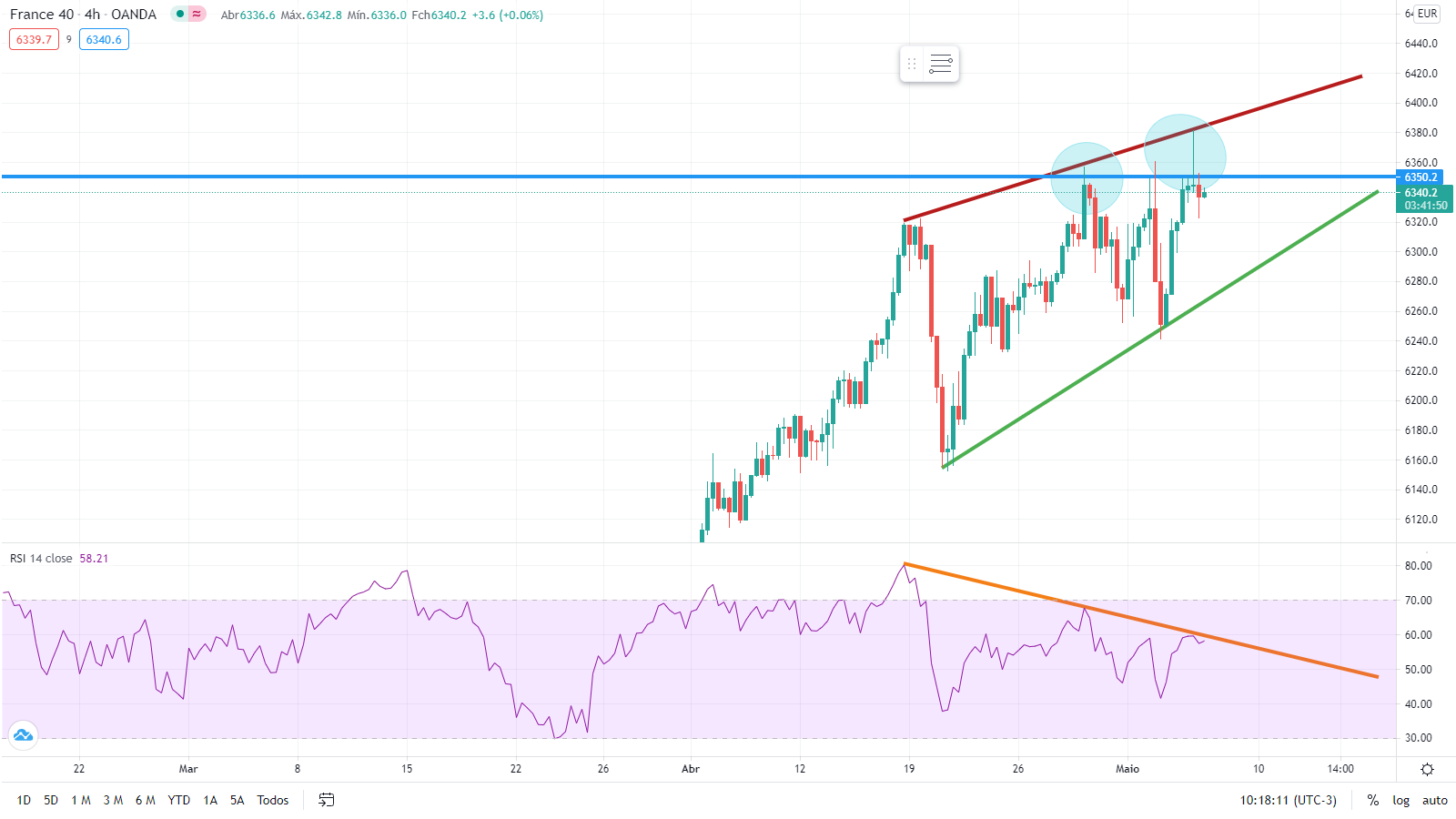 deixo abaixo um gráfico diário do cac 40 com a sua situação técnica do momento.