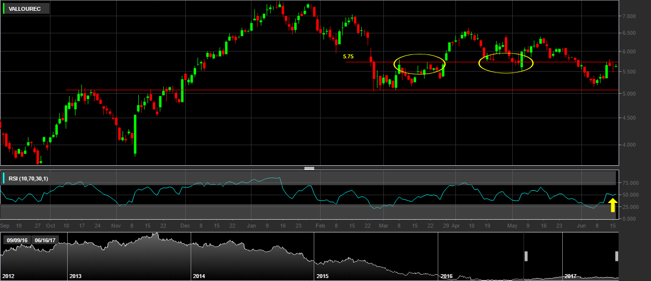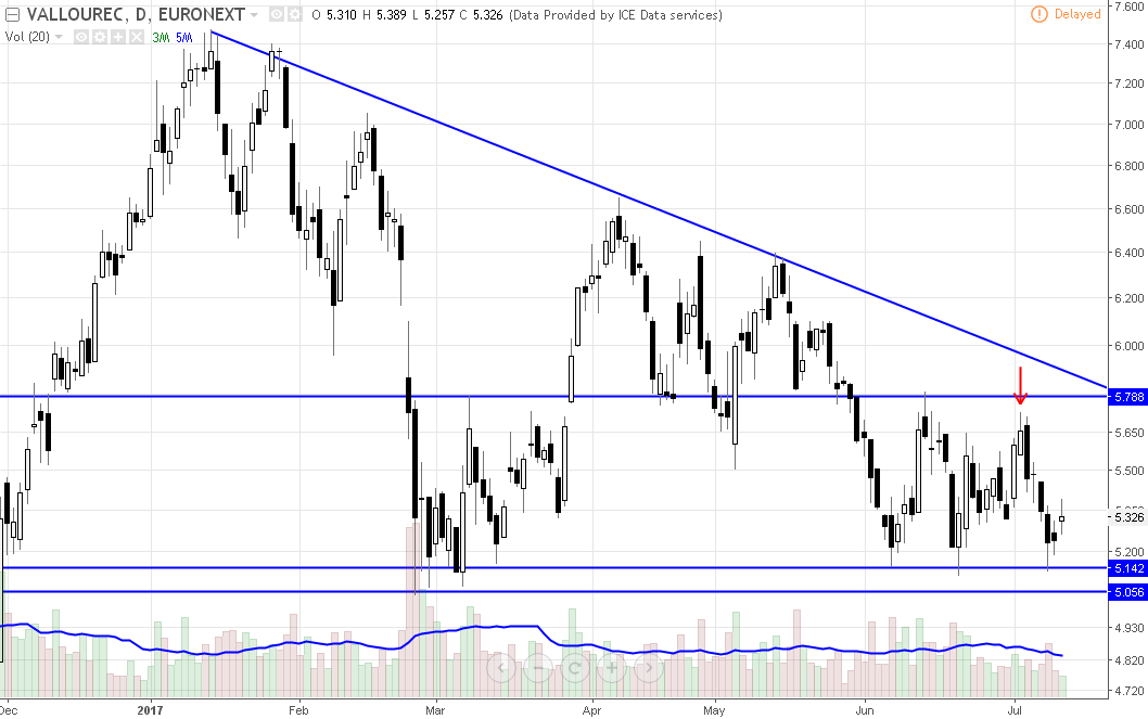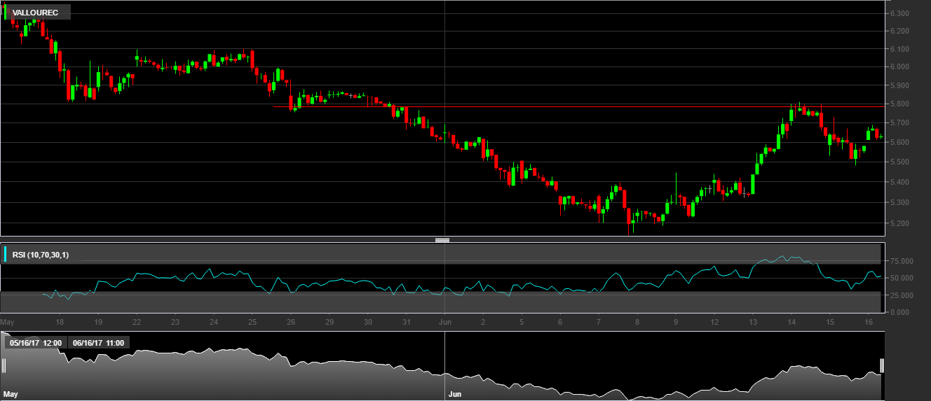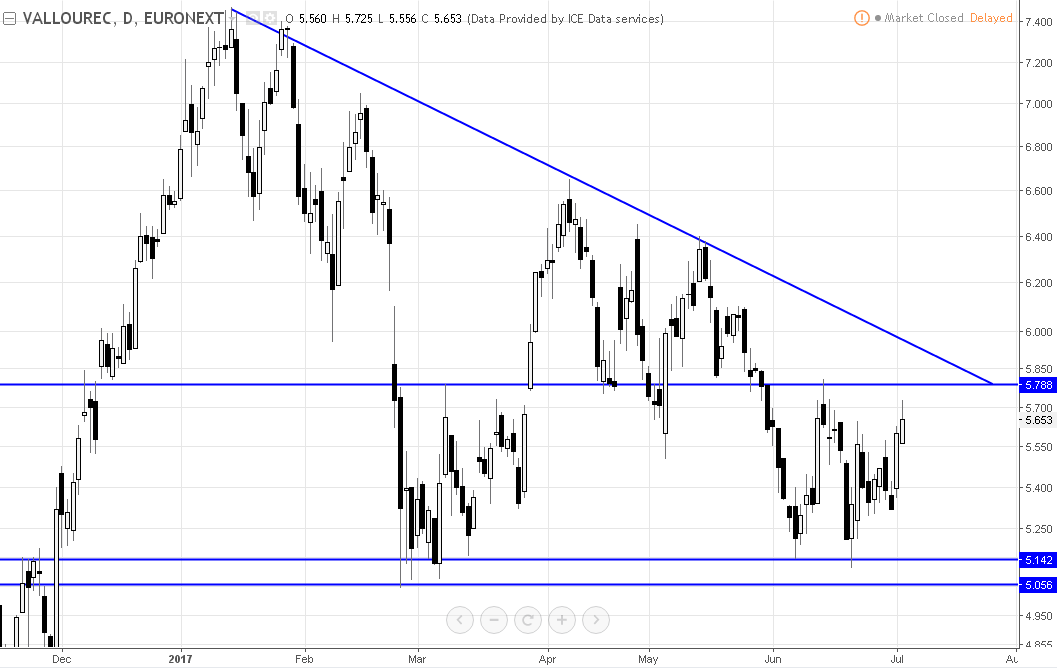 b) Resistência nos 5.75 EUR;