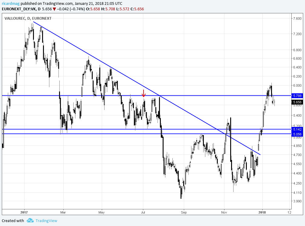 Resistência de curto prazo nos 5,80 e ltd. Tendência de médio prazo descendente com resistência pelos 6,50.