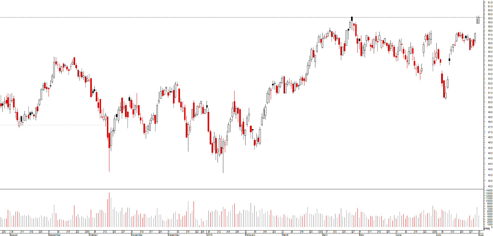 no gráfico diário temos um rally no seguimento do brexit que leva uma valorização acima dos 62%