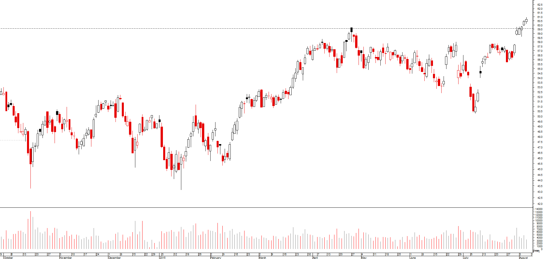 Este título deve ser negociado num verdadeiro forrobodó entre os corretores. No rasto das suas transações há uma série de gaps que são sempre preenchidos. Pelo menos tem acontecido assim nos últimos 5 anos...