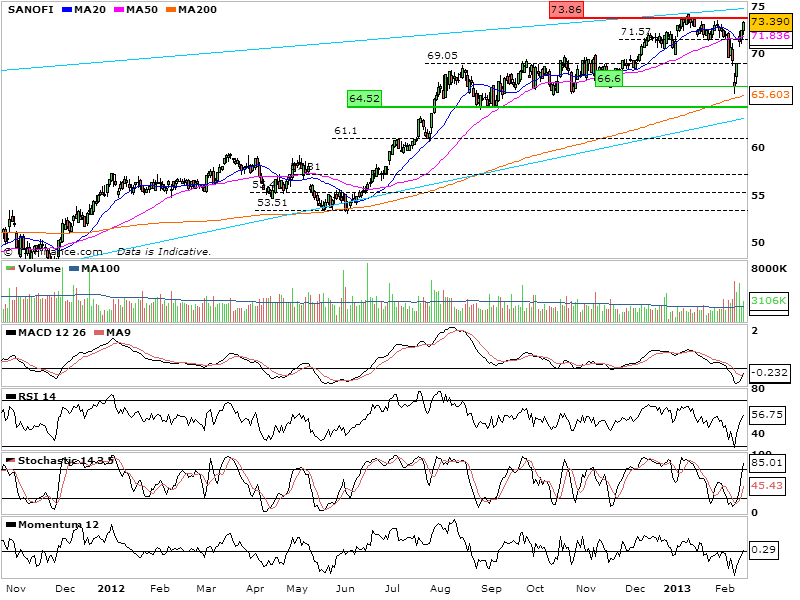As acções da Sanofi estiveram a descer 4,99%, a maior queda desde Setembro de 2011, encontrando-se agora a cair 3,24% para 67,12 euros.