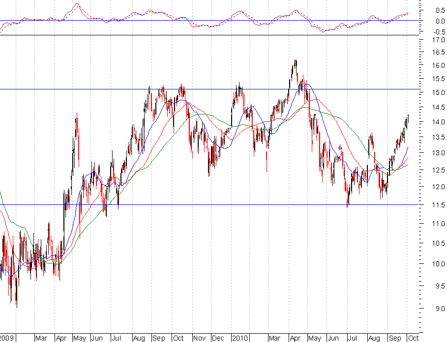 A resistência mais importante situa-se nos 15 euros - se for vencida, o título fica bastante bull.