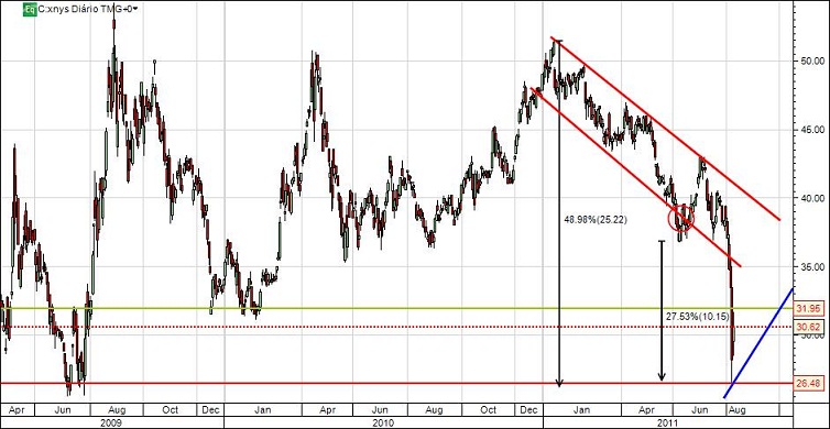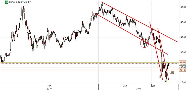 O titulo continua pressionado pela sua LTD de médio prazo e pela EMA dos 50 periodos. A quebra de ambos os pontos chave devem ser encarados como mudança de tendência.