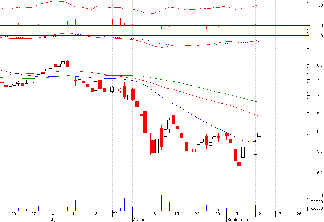 Boas, quanto a mim ainda mantém uma tendência descendente, no entanto com a vela de hoje poderá haver subida até à resistência por volta dos 6,8. Ainda sou um pouco tenrinho nisto, mas esta é a minha opinião.