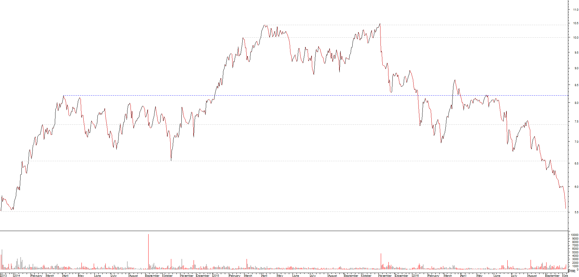 A Galp em 2017 também segue negativa no ano, creio que não me equivoco quando afirmo que vai seguindo mais ou menos a mesma senda da evolução da matéria-prima.
