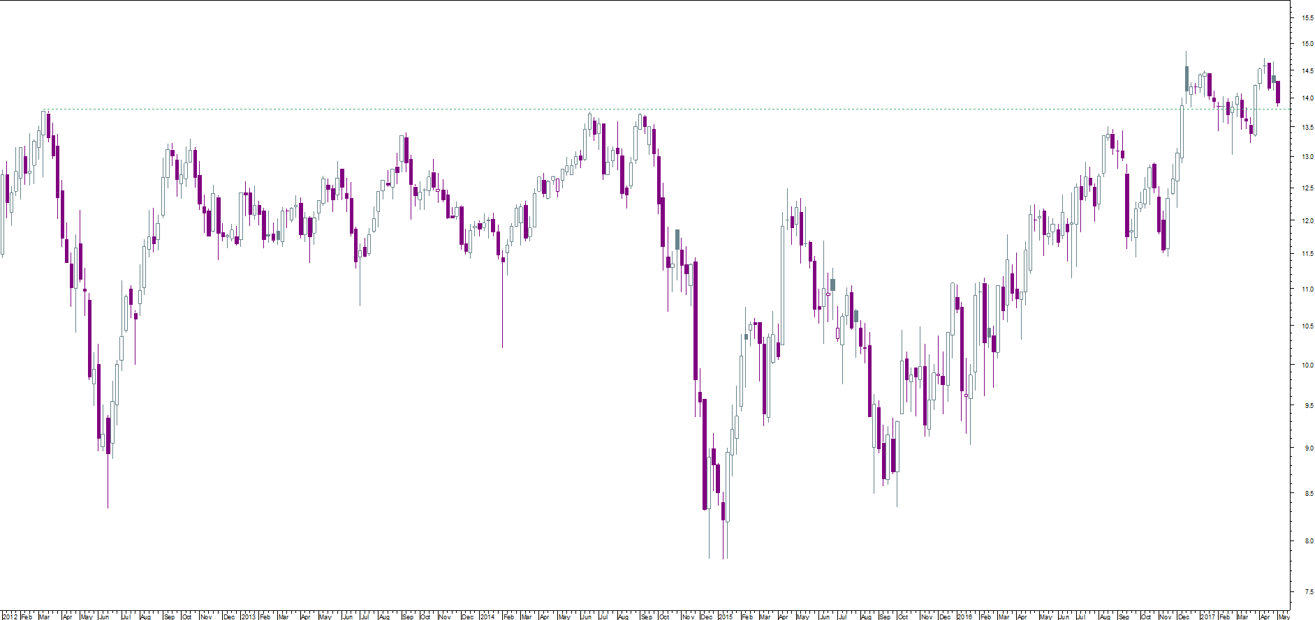 à semelhança do que se passa com o petróleo, a mota encontra-se numa zona de confluência de várias pressões vendedoras: por causa da LTd e também por estar em zona de resistência propriamente dita