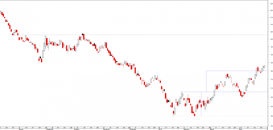 Parece estar a querer quebrar, vem de um fundo arredondado com dois meses, com algumas tentativas de quebra, será que tem condições para ir até aos 940/50 (LTD)?