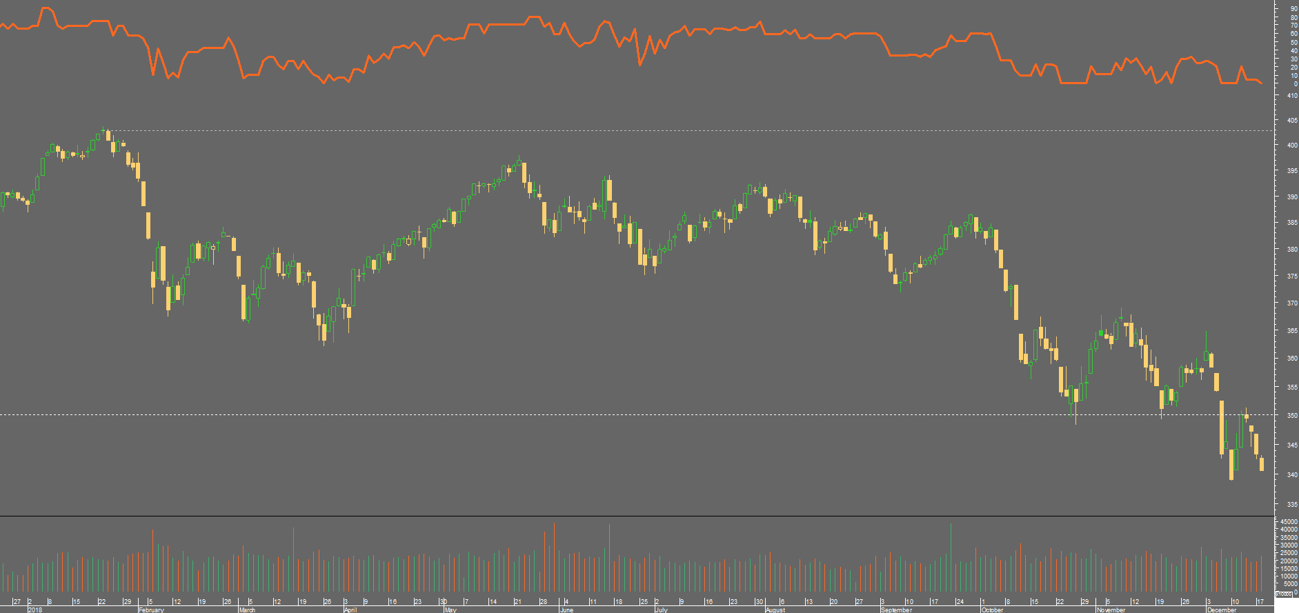 contudo, pela minha análise, a quebra do suporte dos 350 é inquietante; é de notar o clásssico pullback