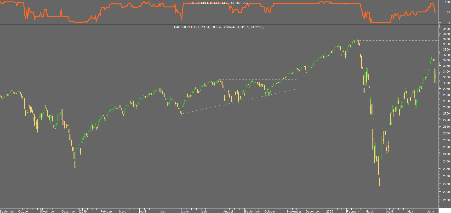 o meu indicador de sentimento bull/bear para o S&P 500 está um tudo nada acima dos 50