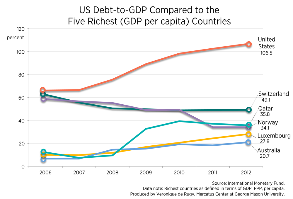 4 - Círculo virtuoso: Com 3 honrosas excepções, os maiores GDP per capita são iguais a crescimentos de dívida pública próximos de zero, muitos casos com superavit até, e que totalizam menos de 60% do PIB. Quando existe geração de riqueza e libertação de recursos, é claro que também cresce a despesa em SS, Educação, Saúde e Justiça, mas cresce mais ainda o investimento produtivo para consumo interno e exportação reforçando o círculo virtuoso.