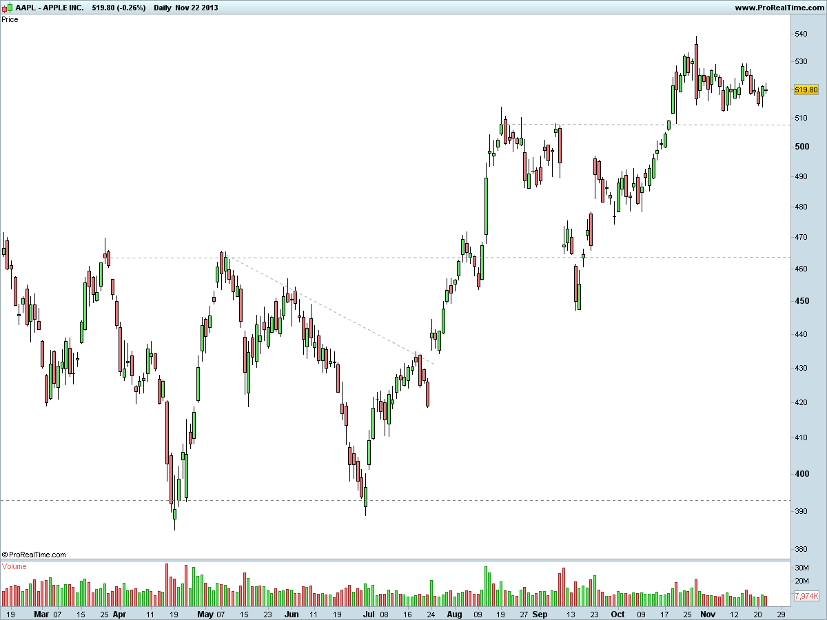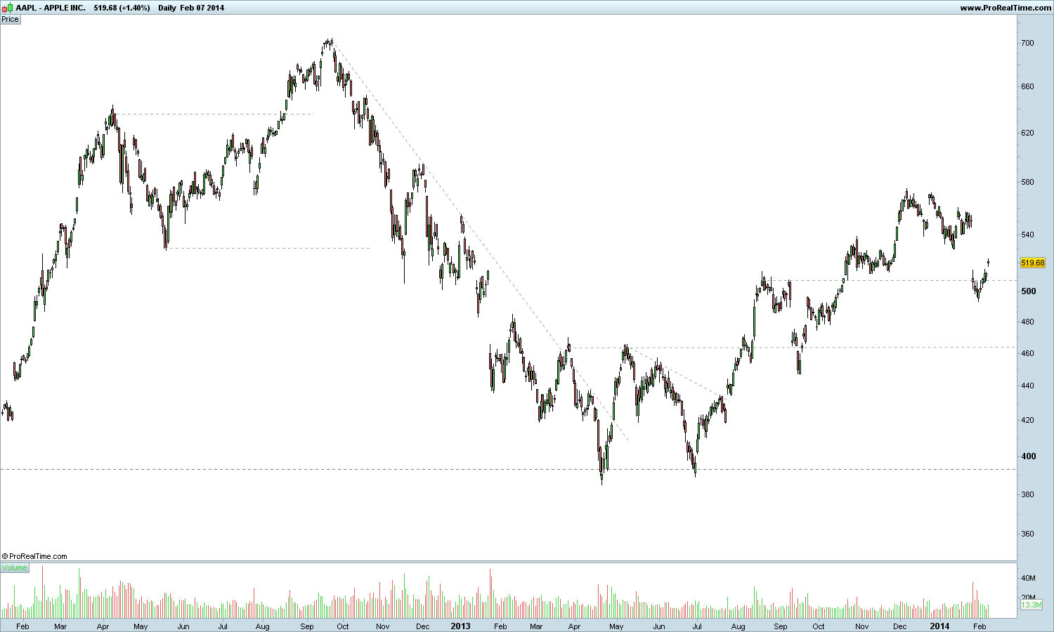 se para prazos mais alargados a tendência é ascendente, para o curto médio prazo parece haver ausência de tendência definida na apple (ao fim e ao cabo está a valores de outubro/novembro..)
