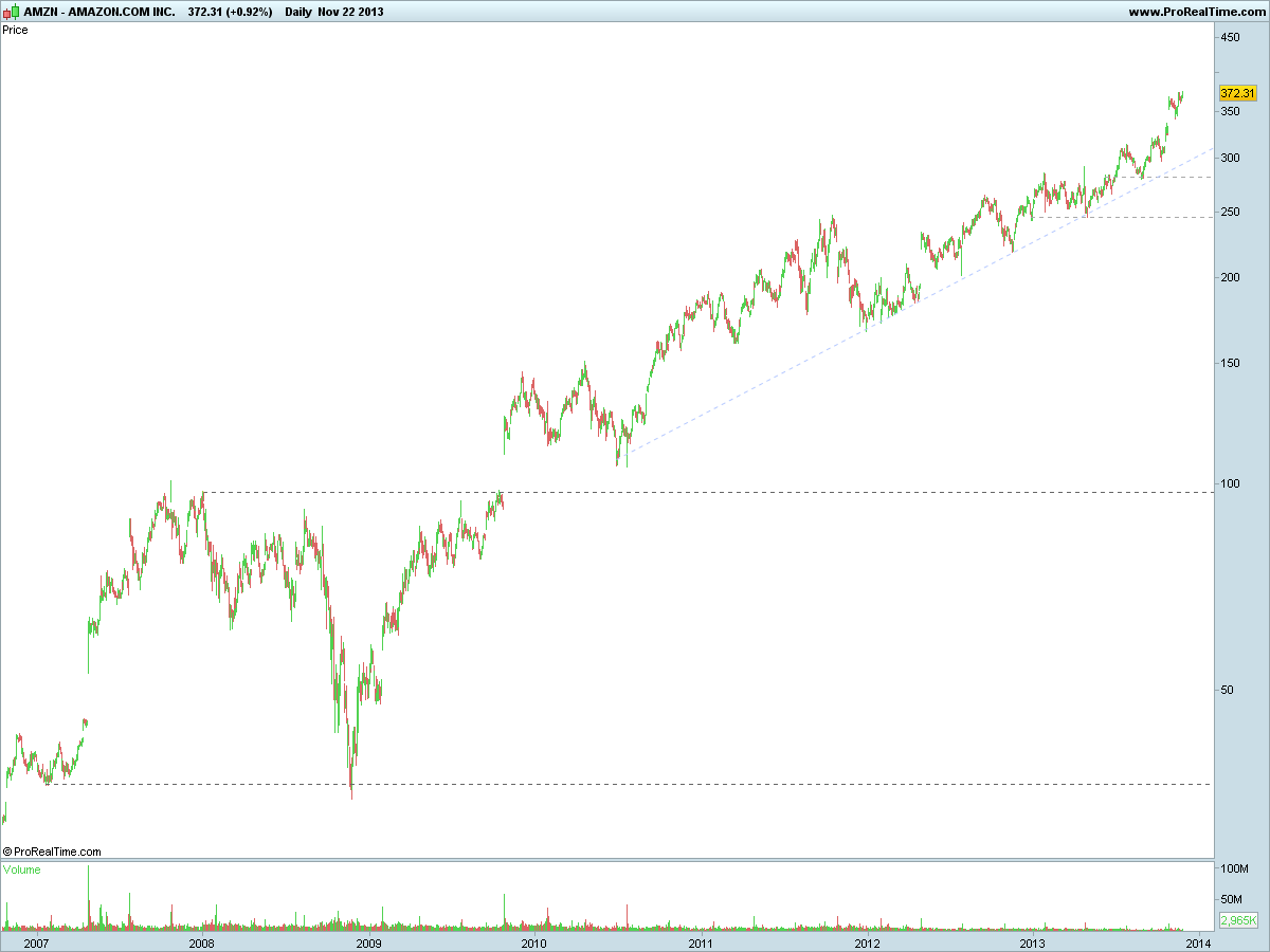 70 anos depois a apple tem ainda qualquer coisa disso: reparem nos círculos que rodeiam gaps ou grandes velas quando o preço atinge sucessivamente 200, 250 e 300