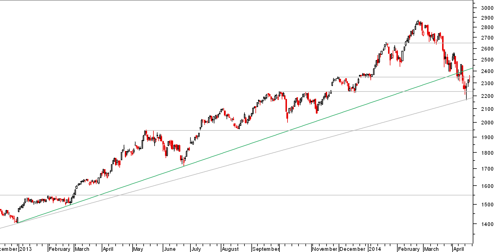 numa análise mais contida, através das linhas de suporte, o índice já quebrou vários, faltando aquele que anda na zona dos 22XX