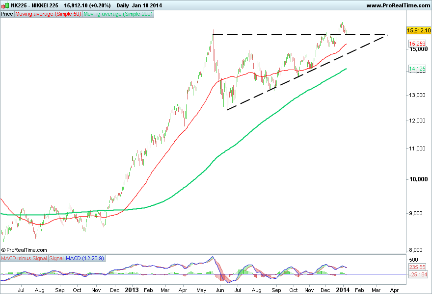 Há um mês coloquei a hipótese de o Nikkei estar a desenhar um triângulo ascendente.