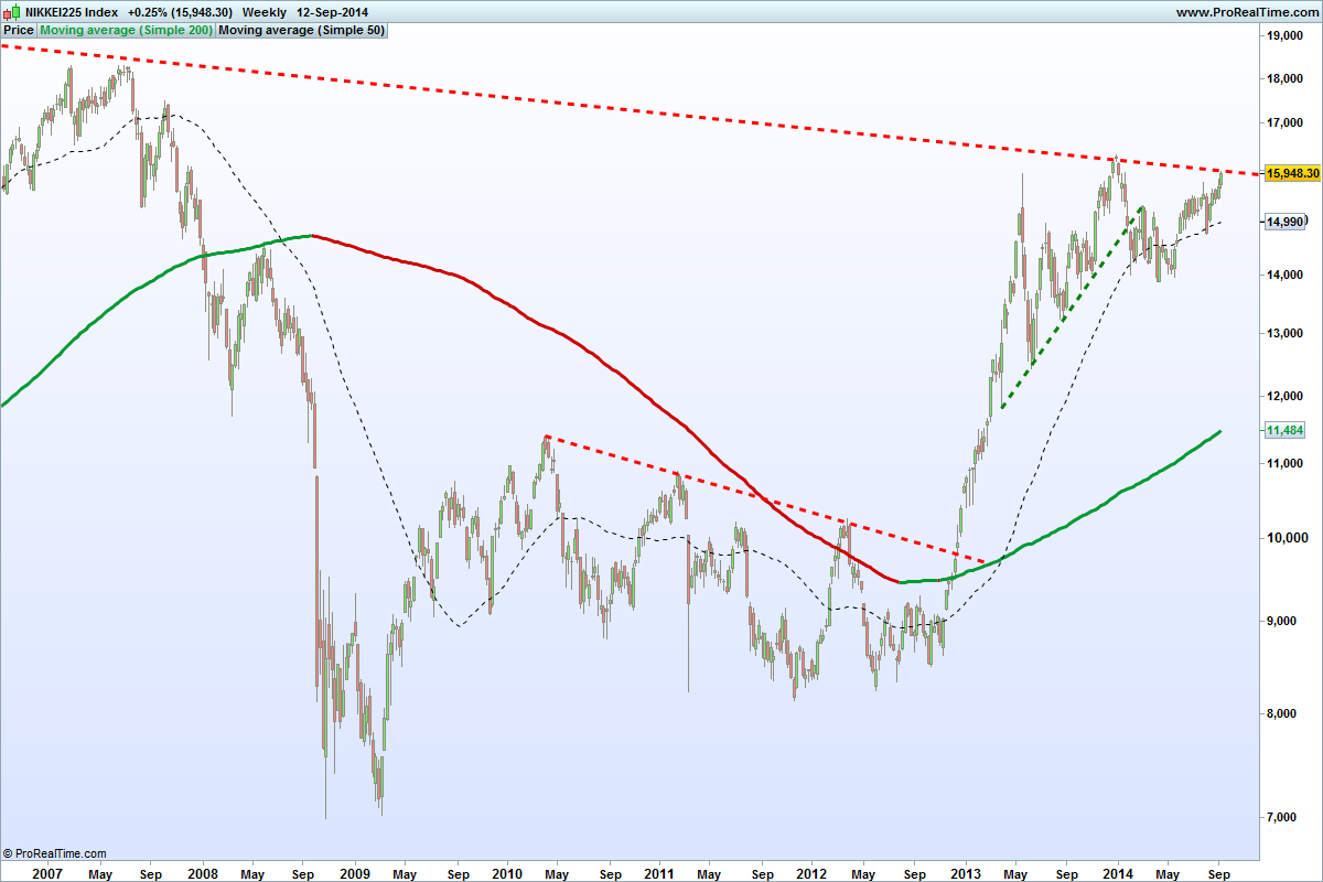 A posição no Nikkei será encerrada apenas aguardo que atinga o valor do stop, caso tal não aconteça e quebre a resistencia a posição será encerrada imediatamente.