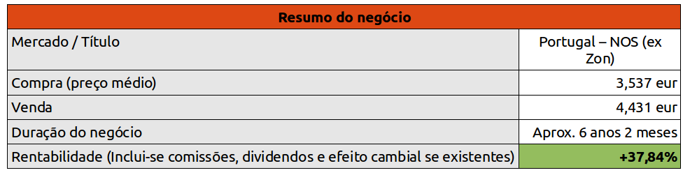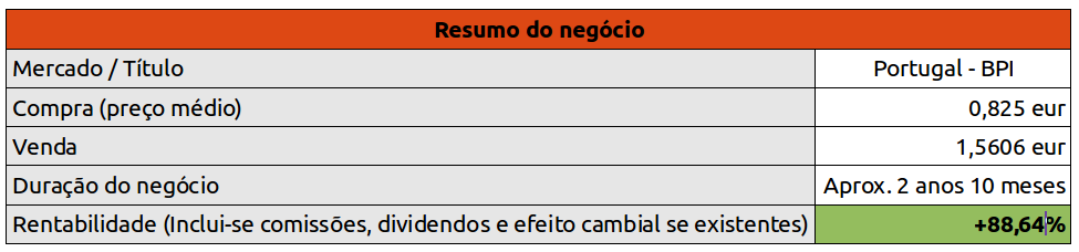 Atingido o trailing stop mental, foram vendidas hoje a 1.103 eur/acção. Deixo em baixo um resumo do negócio.
