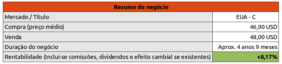 Mais logo coloco o resumo do negócio do Citigroup e o gráfico com o peso de cada cotada agora com os direitos do BCP incluidos.