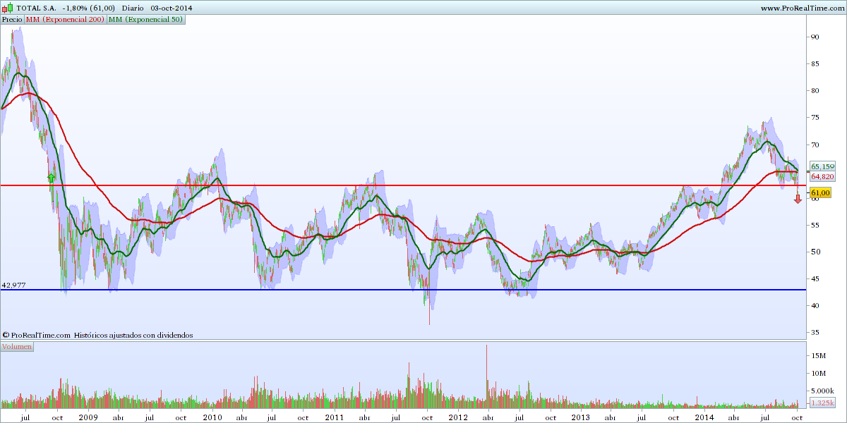 TOT - No gráfico americano a cotação está abaixo da mm200, no gráfico francês está bulish acima da mm200. Vou olhando para os dois e mantendo à mais de 6 anos com bom encaixe de dividendos e o efeito cambial a ajudar também.