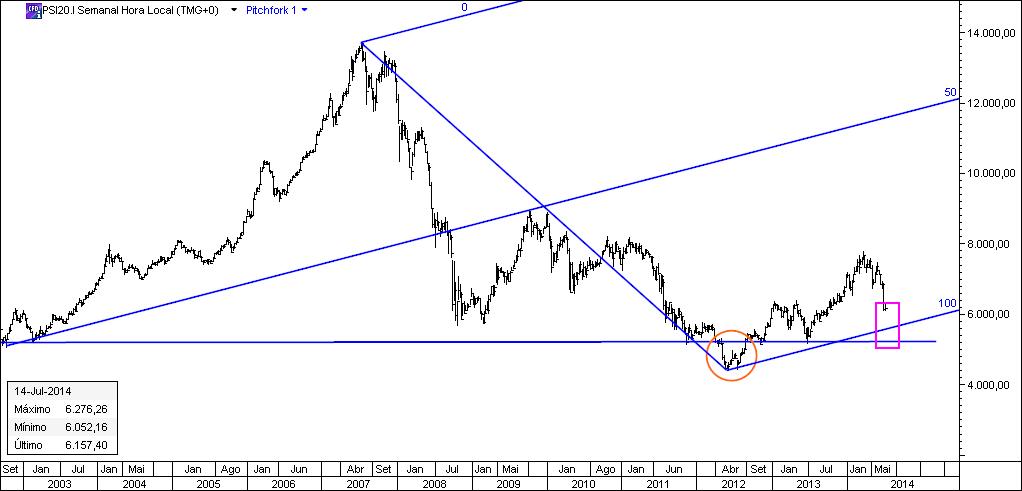 Deixo uma intuição em forma de dúvida pedindo o vosso parecer sobre a mesma. Actualmente o PSI20 perdeu todos os ganhos do ano, ano este em que chegou a ter dois dígitos de crescimento, e liderou a tabela das principais praças mundiais. Poderá esta inversão da tendência ser meramente conjuntural, ou seja, resolvido o problema do GES/BES e da PT, que está na base desta convulsão, o índice voltar à tendência ascendente? Isto independentemente da dificuldade da resolução dos problemas enunciados. Em conclusão, não é ainda cedo para declarar o fim do bullmarket?
