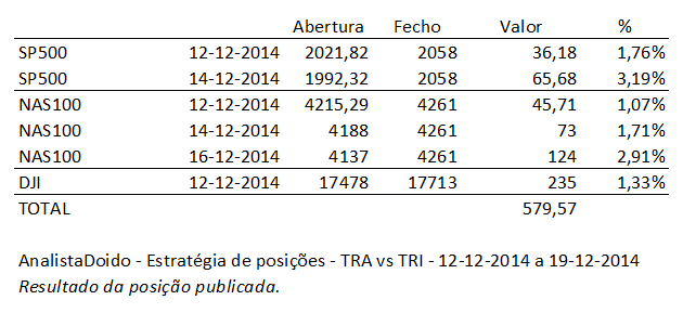 - AnalistaDoido - TRA vs TRI - 12-12-2014 a 19-12-2014 - Resultado da estratégia publicada