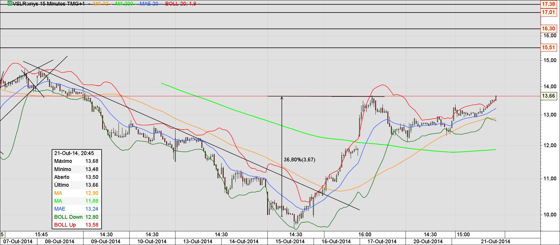 O SP, o DJ e o NASDAQ derreteram-se lindamente e a VSLR chegou a 11% e fechou com o preço superior ao dia anterior, e fechou com uma recuperação de 6,74% em relação ao preço do IPO de 16 usd.