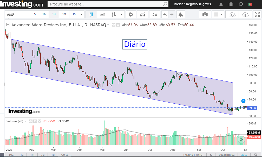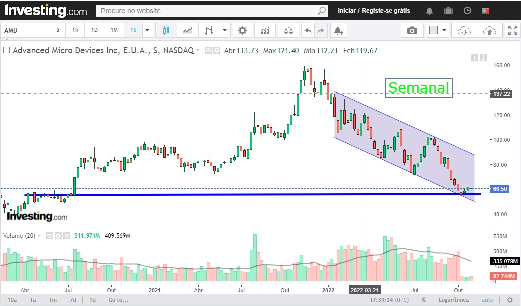 deixo ficar abaixo os gráficos diário e semanal da AMD para se aferir da sua situação técnica.