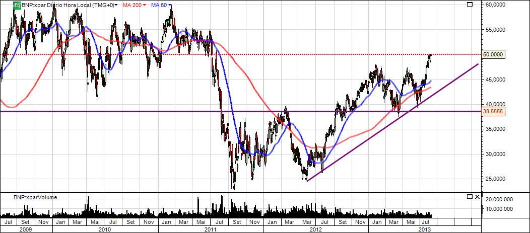 BNP veio testar o suporte nos 47,32 e até agora está a reagir muito bem, formando uma vela de inversão.