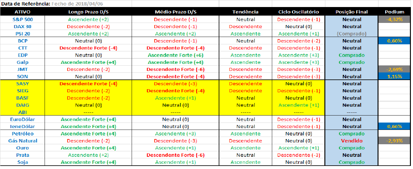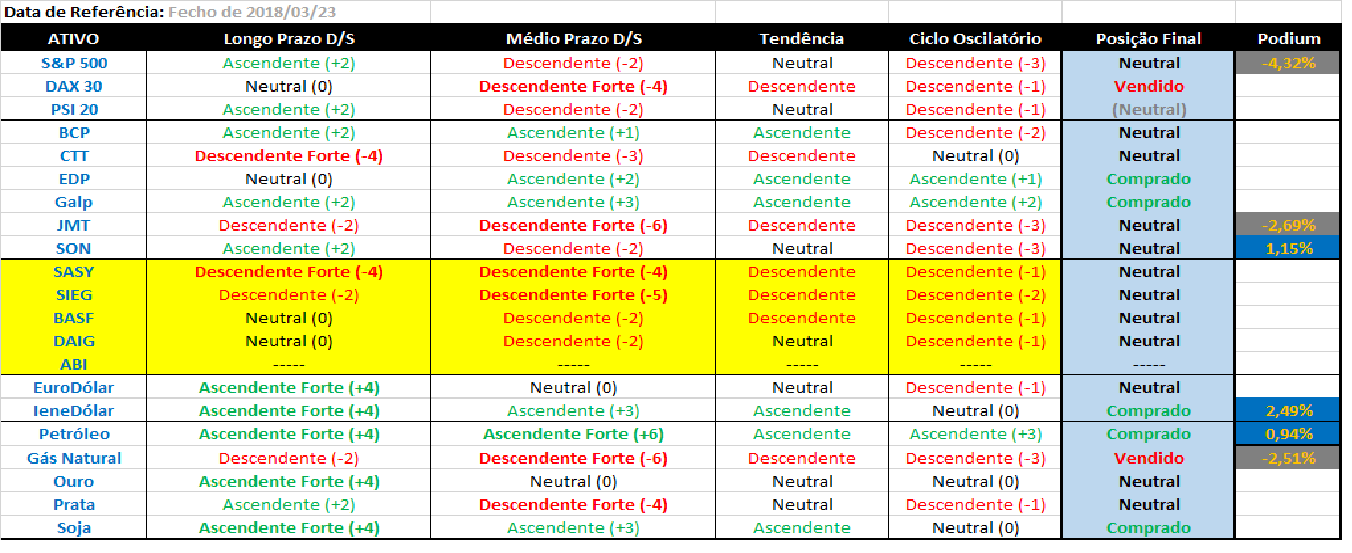 Assim parece, a tendência de longo prazo que se mantém ascendente no S&P impede a carteira de assumir posiçöes curtas.