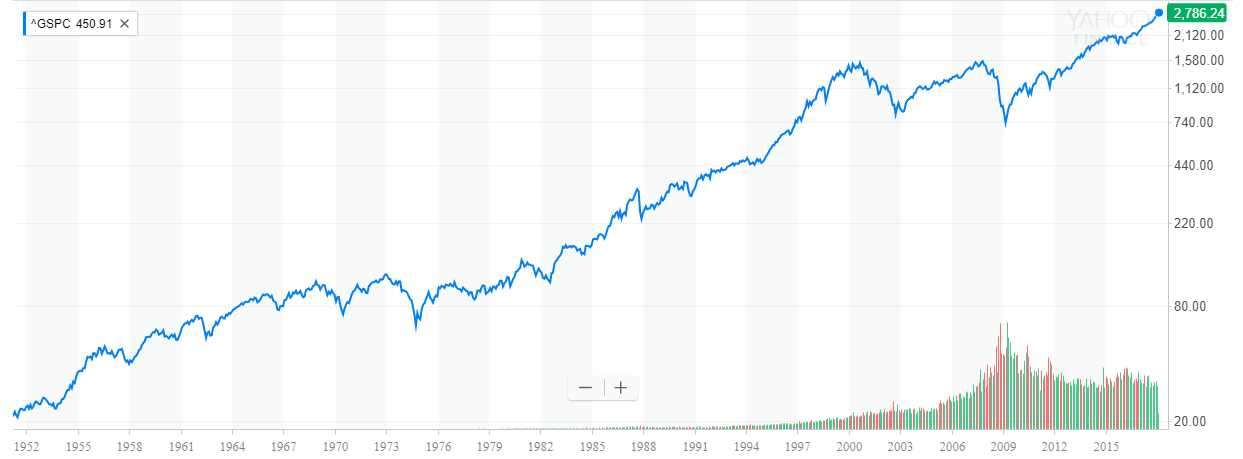 Um gráfico em escala logarítmica dá-nos uma perspectiva de longo prazo muito mais realista do índice. Gráficos em escala linear são... traiçoeiros.