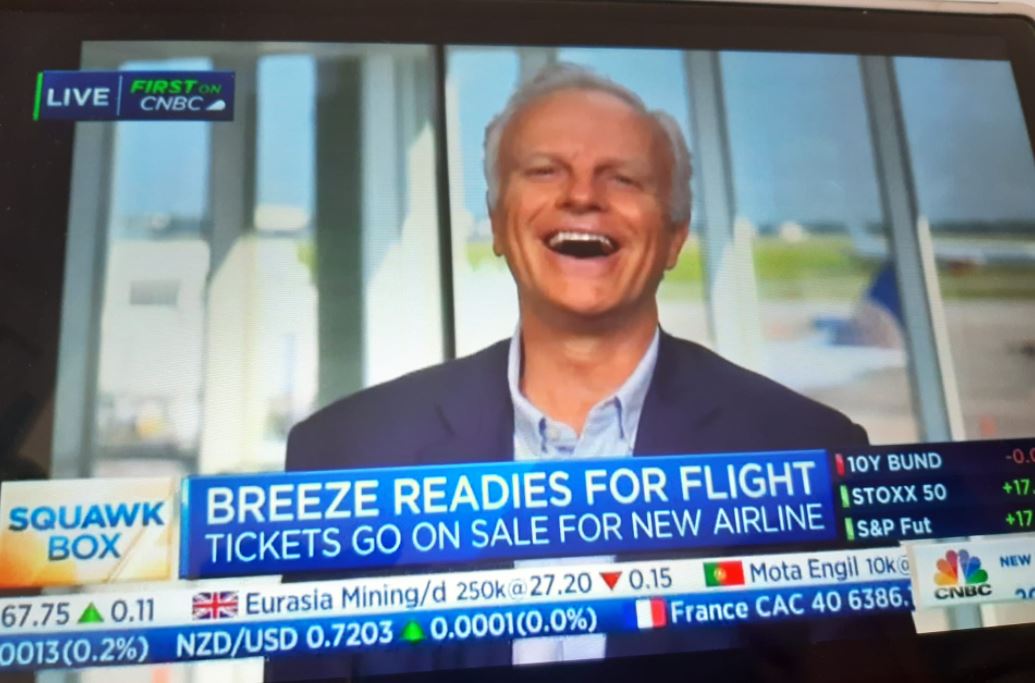 Entretanto tivemos mesmo agora na CNBC o CEO de uma nova companhia aérea que começa a voar esta 5af nos EUA. Conhecem?