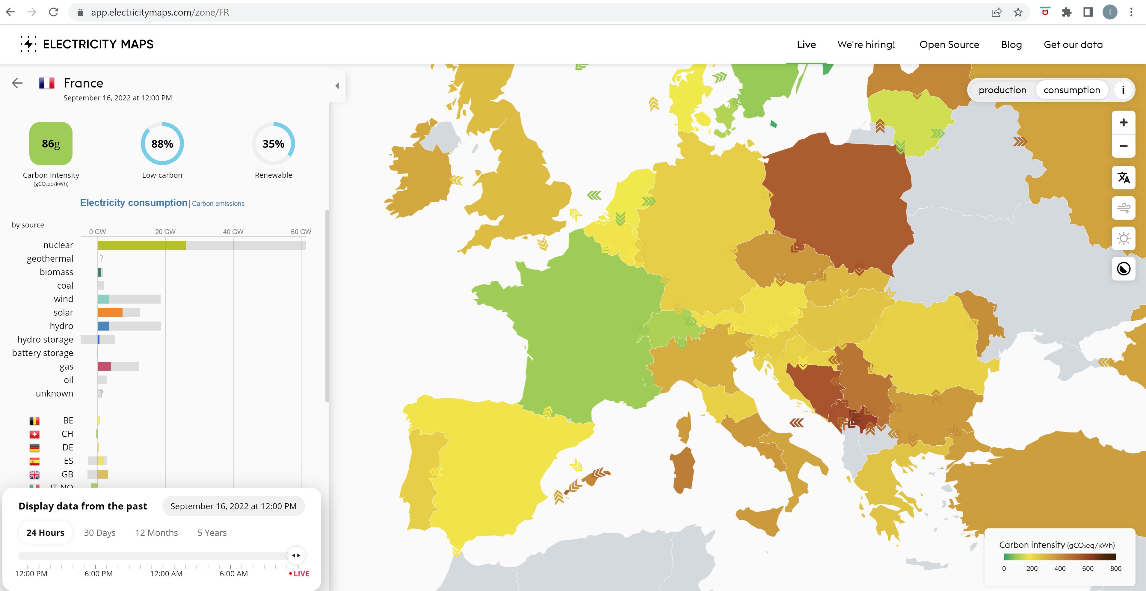 Na França 50% é de origem nuclear e apenas 7% é produzia com recurso a gás.
