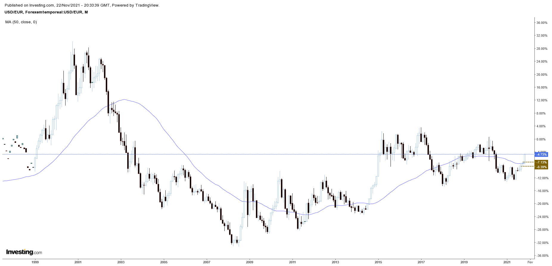 O EUR/USD perde 1% na semana e volta a bater mínimos de 2021 - eu continuo convencido que este "bear" tem pernas, devido ao diferencial de juros / inflação entre as áreas do dólar e do euro.