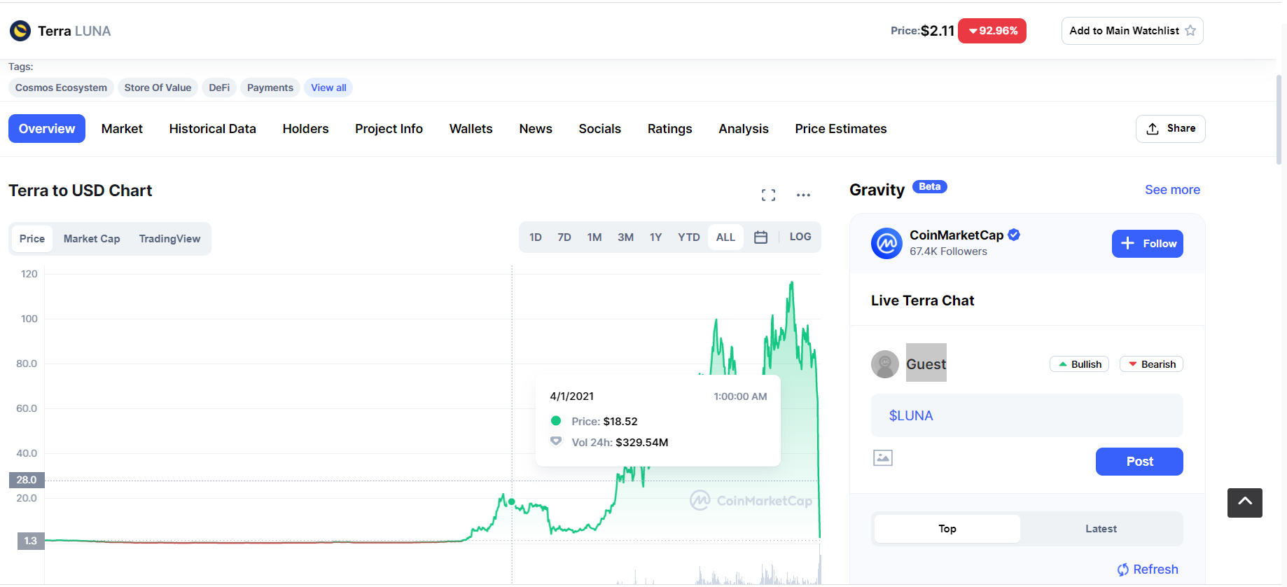 Todo o "hard" collateral foi liquidado (não sei se ainda há algum AVAX) e o que resta é LUNA que crashou para cêntimos, a única forma de limpar UST é este ser transacionado a desconto e LUNA crashar, e mesmo assim não é líquido que seja suficiente. Reflexividade do sistema é enorme, como o valor de ambos se relaciona a espiral de subida existe igualmente para a descida. Market CAP Luna muito menor que UST implica ainda mais descida de LUNA, que já perdeu mais de 99% do seu valor.