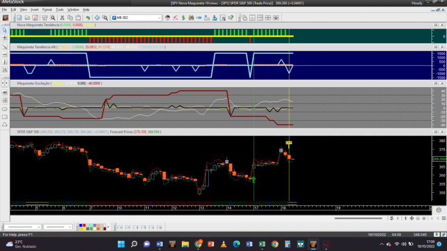 Antes de fornecer aqui a próxima trade permitam-me efetuar um aviso: troquei o gráfico dos 2 dias pelo de 15 minutos, que à semelhança da escala de meia hora só possui autorização para trades do tipo oscilatório, porque detetei que o gráfico 2D padece dum problema dum “bug” curioso de origem, que acabei de detetar e que terei de relatar ao suporte de clientes da plataforma do Metastock.