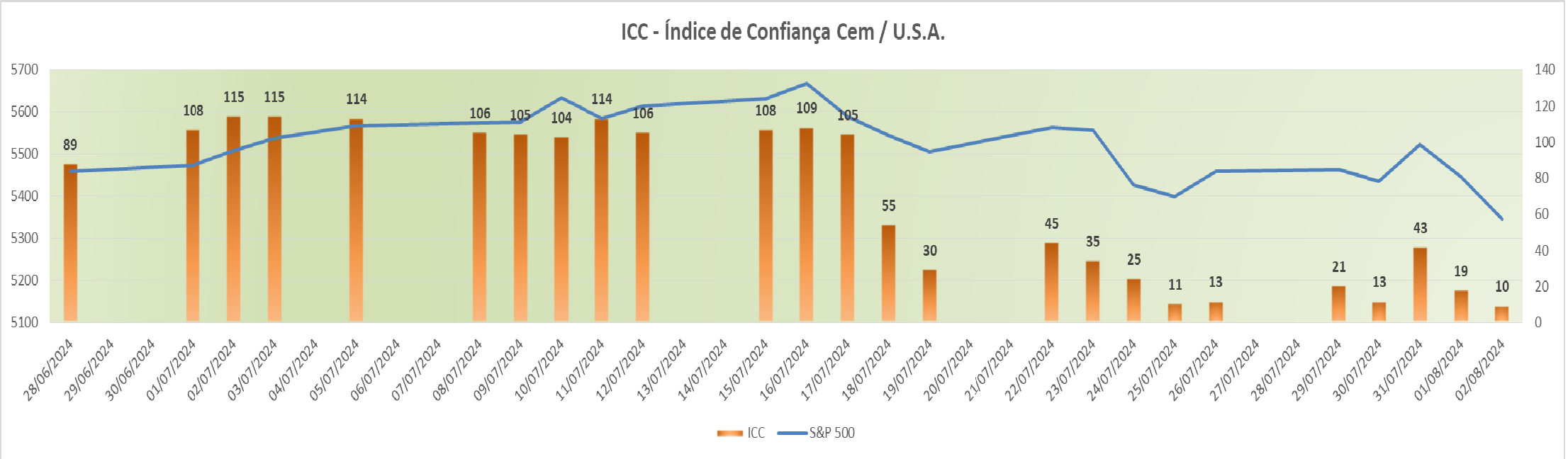 No meu caso particular, em que sigo também este índice, a quantidade de posições de risco em gestão ativa a tomar em posições compradas e vendidas sobre ações ou nos índices mais significativos norte-americanos (Dow Jones, Nasdaq e S&P, particularmente com maior relevância precisamente no S&P 500) acaba por gerar uma imagem bastante proporcional aos valores do índice ICC.