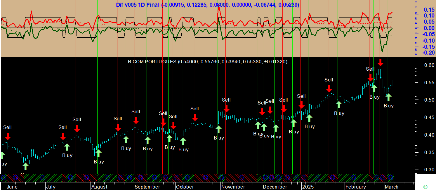 Se alguém pretender pedir algum exemplo recente em ativos conhecidos negociados na Bolsa, basta pedir o nome do ativo e escala pretendida, terei todo o gosto em reproduzir aqui os sinais neste indicador com os respetivos gráficos.