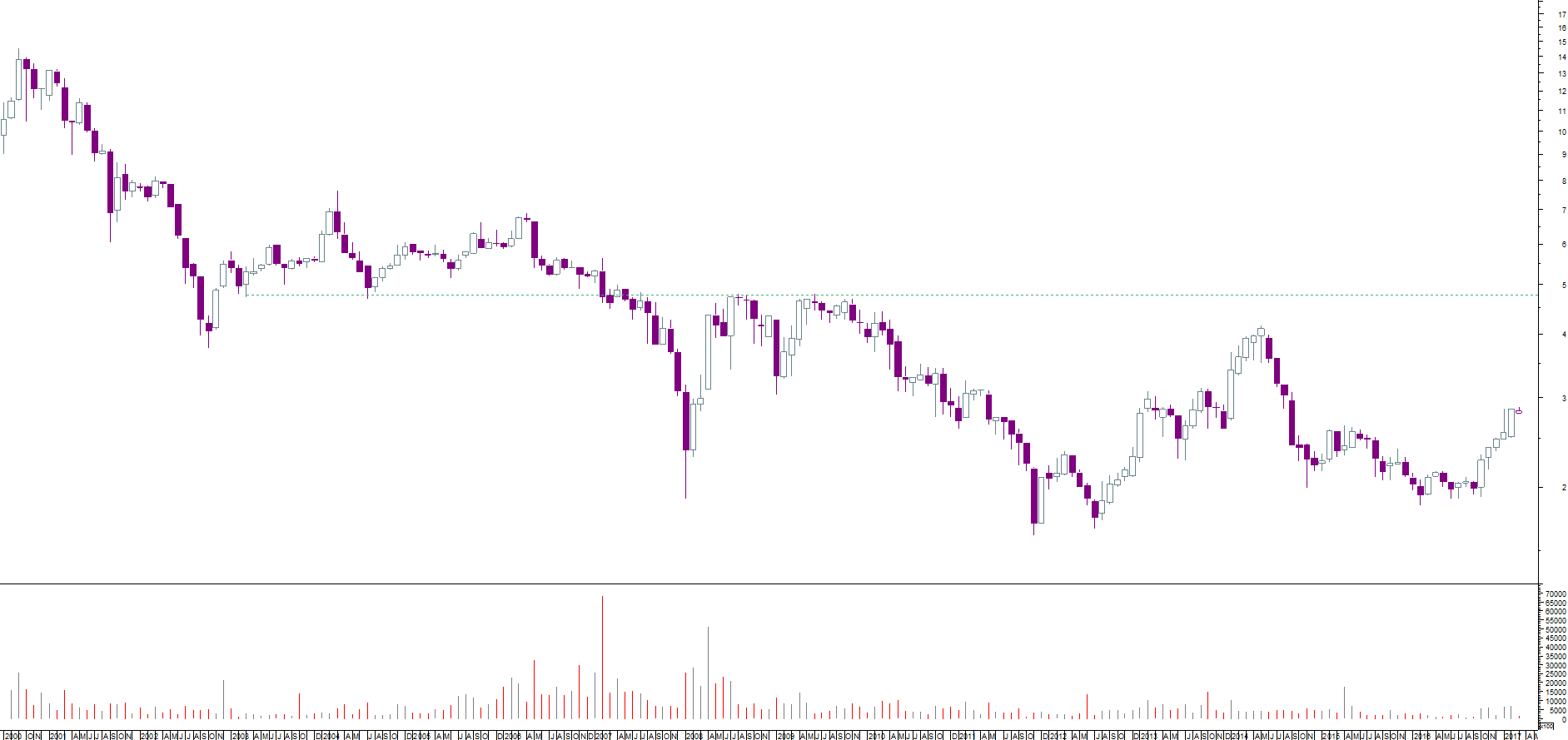 é assustador fazer AT nesta cotada: reparem na quantidade de sessões com fecho=abertura, e sem variação..