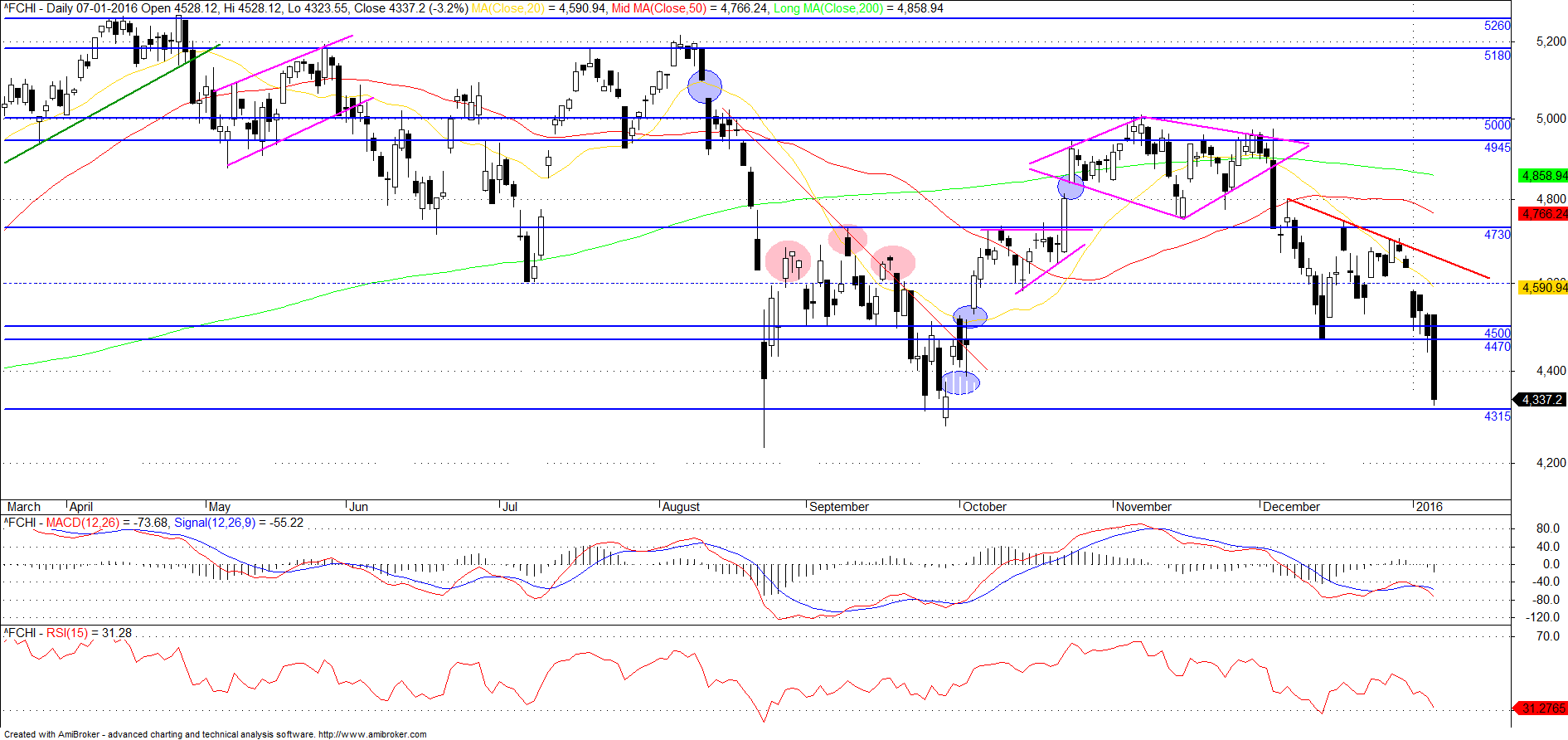 Como as quedas já estão violentíssimas, em dias e em valores..... dupliquei a minha posição.... agora a 4326 pontos (junto ao suporte).