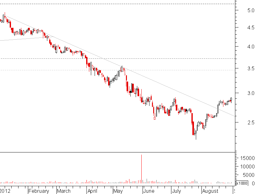vencer confirmadamente aquela resistência pelos 2.7 significa um fortíssimo sinal de força, e até mesmo uma inversão de tendência de médio prazo, deixando muito espaço aberto para subidas até aos (quase) 4 euros