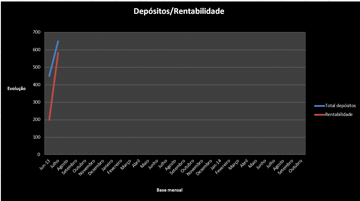 Montante total de depósitos desde Junho de 2013: € 650,00;
