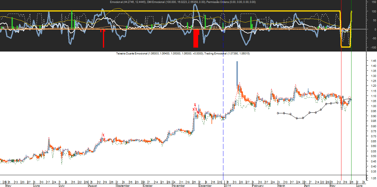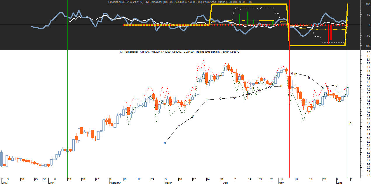 Apesar da recuperação ocorrida nestes últimos dias nos mercados em geral a carteira “Emocional 2014”, que já dispunha de um número muito reduzido de títulos comprados, acaba hoje de dar ordem para reduzir ainda mais a sua exposição ao risco ao surgir hoje uma ordem de venda na Soja, obrigando assim a fechar amanhã 1 trade tendencial e 2 trades oscilatórias que ainda se mantinham abertas até agora nesta commodity.