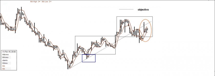 Perseguindo mais um activo para o FIA 2016 com base no sempre clássico "o que foi resistência passa a suporte", com a ajuda de um canal constituído por duas linhas ondulantes que têm contido o preço com alguma precisão. O que interessa não é quando contém (toda a gente o vê), o que é relevante é o que sucede quando não o contém. Não é por acaso que John Bollinger tem escrito umas coisas e aparece com assídua regularidade nos fóruns habituais.