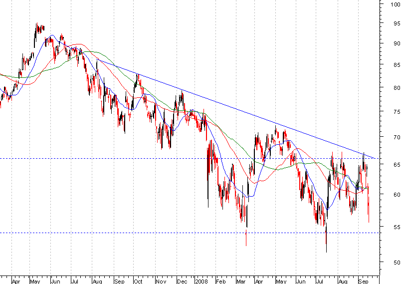 - 66 euros - resistência (travou os recentes rebounds por três vezes)