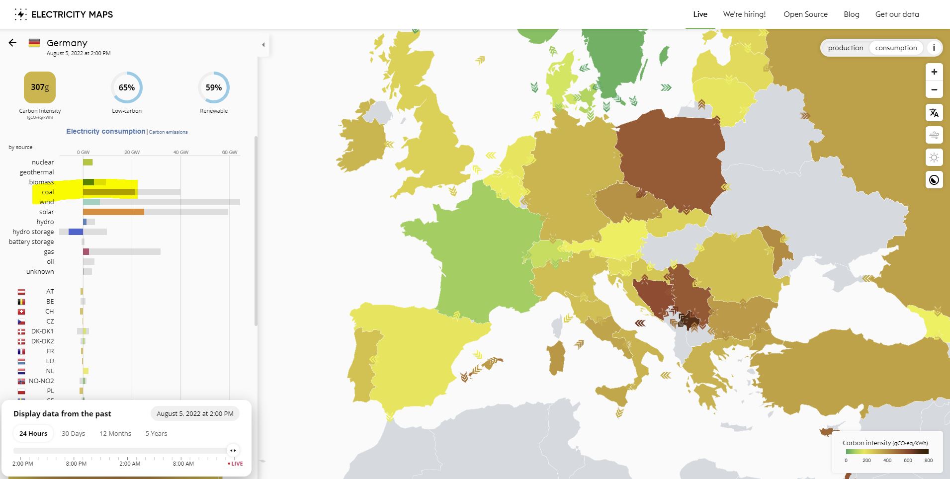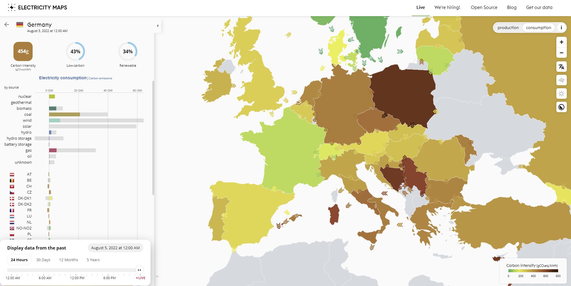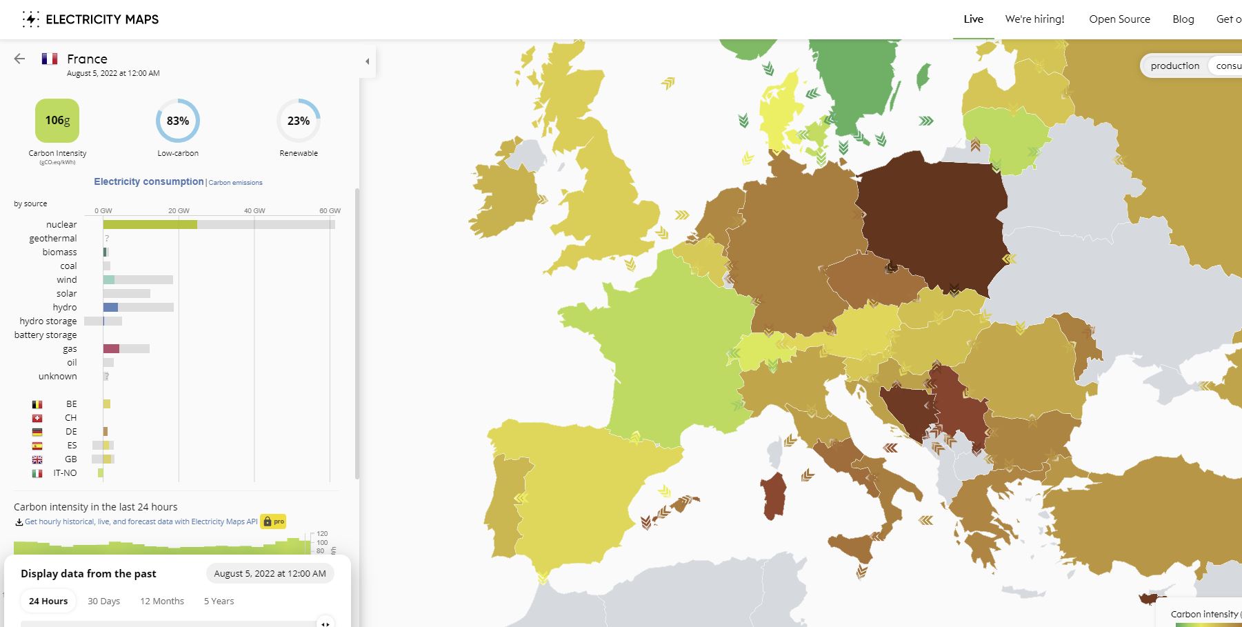A França com reatores dos anos 60 tem menos de 30% das emissões comparado com a Alemanha ás 14:00.