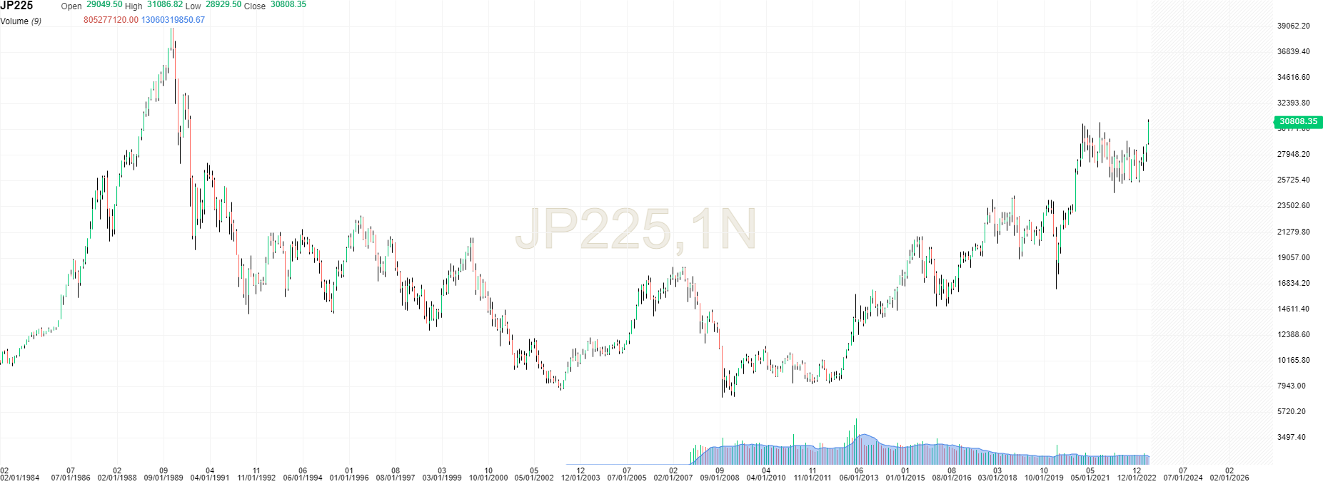 Será que o Japão está de volta , para já voltou ao nível dos anos 90 no índex Nikkei .