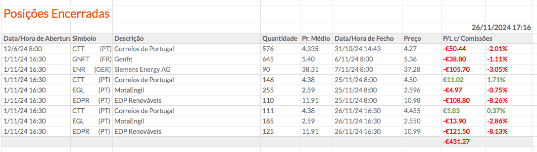 Existe também um pormenor que é a carteira dos EUA ter começado a 4 de novembro com um resultado negativo de -2,71%, porque passei para ela o resultado negativo da GCT que tinha no tópico antigo. Mas acredito que daqui a talvez um mês ou meses estas coisas não vão ter relevância.