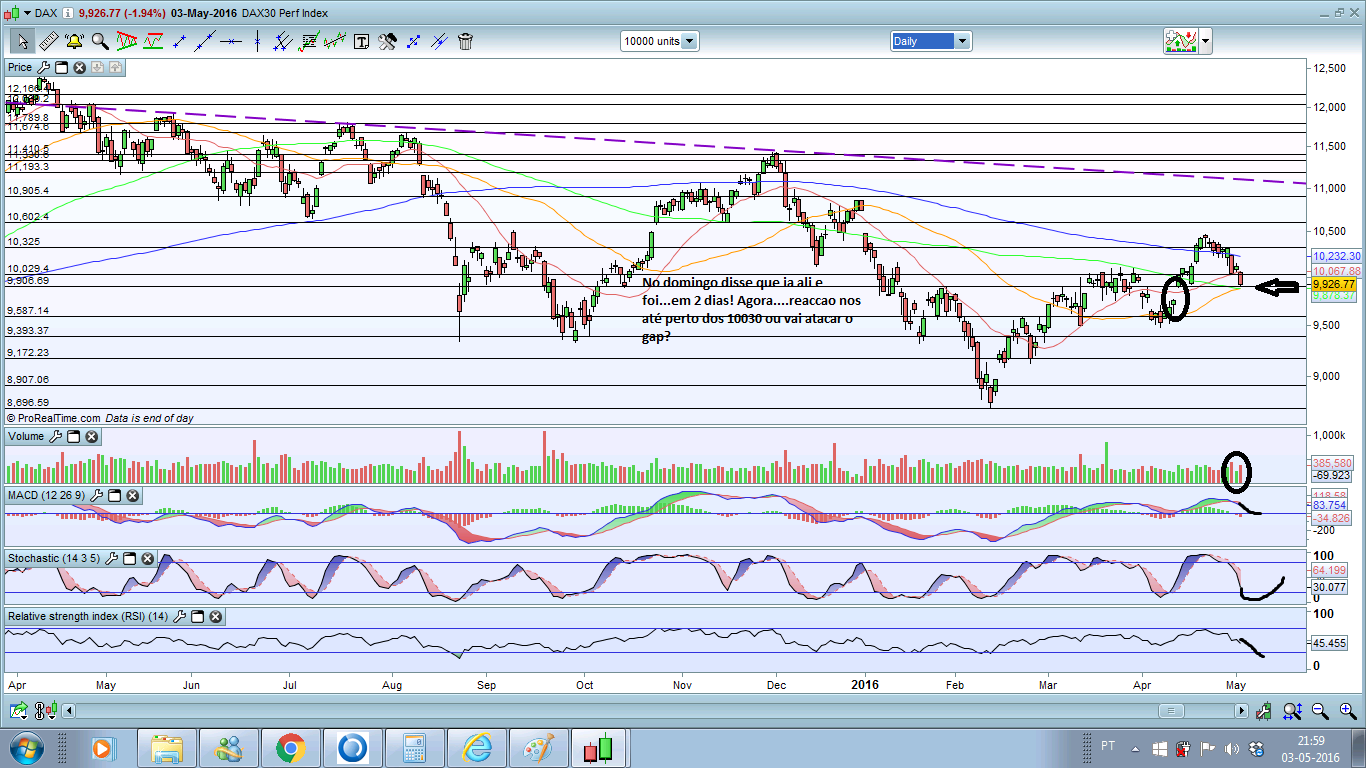 Estabilizou nos 9950-9960s mas dá-me ideia que está á espera da abertura dos americanos. Se realmente os futuros se mantiverem assim negativos, o Dax ainda vai cair mais.