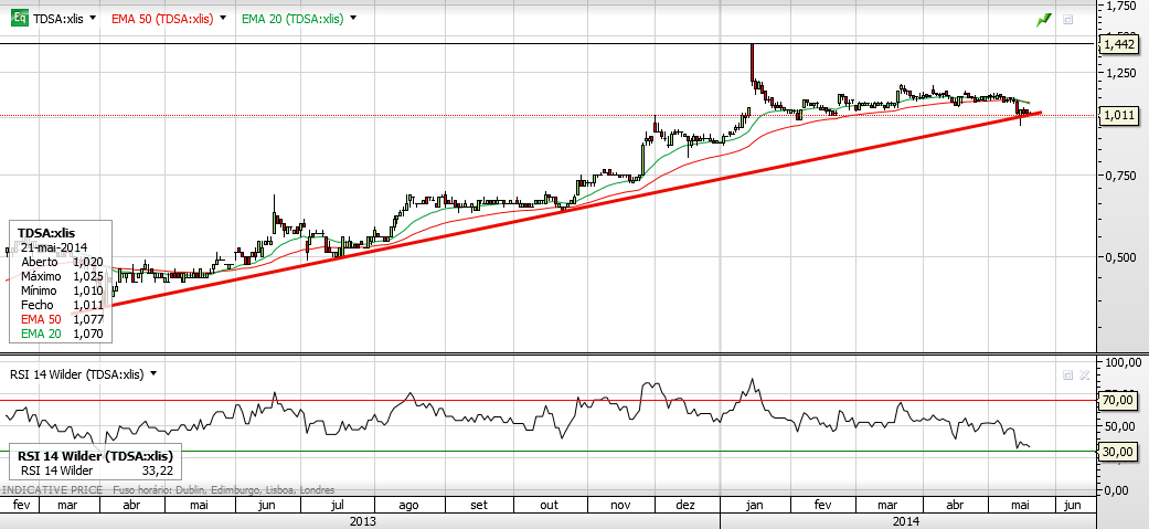 A TD hoje deu um ar da sua graça, numa sessão de Bolsa negativa. Será que é desta que está para arrancar e vai testar a sua resistência nos 1,20? Depois de uns 10 falsos alarmes nos últimos 3 meses...só acredito vendo com os meus olhos! Já agora, alguém me sabe dizer qual o volume médio transacionado na TD nos últimos meses? E já agora, onde posso aceder a essa informação (da TD e de outras cotadas)? Obrigado