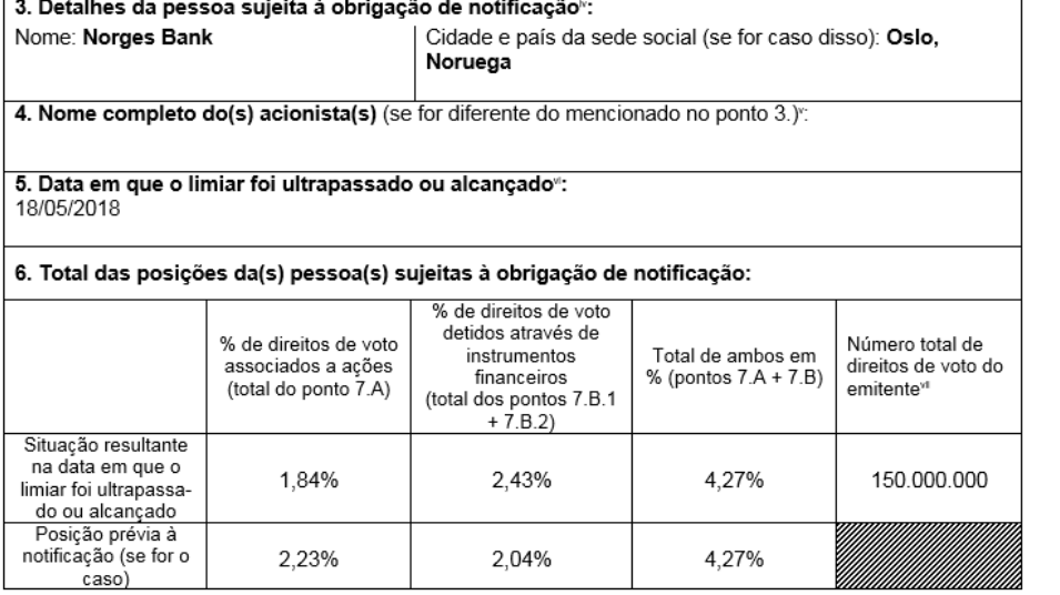 Agora é o Norges Bank que também já diminuí posição detida em acções de 2.23% do capital para 1.84% do capital, detendo ainda alguns instrumentos financeiros complexos .